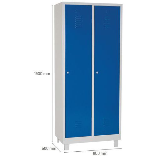 Svařovaná šatní skříň s mezistěnou Manutan Expert DURO PROFI na nohách, 2 oddíly, šedá/modrá
