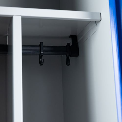 Součástí balení je police, tyč na ramínka, 3 háčky na oděvy a vnitřní mezistěna. K variantě s cylindrickým zámkem jsou dodávány dva klíče.