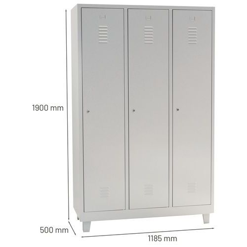 Svařované šatní skříně s mezistěnou Manutan Expert DURO PROFI na nohách, 3 oddíly