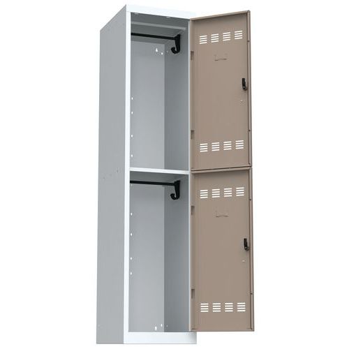 Svařovaná šatní skříň Vinco, 1 sloupec, 2 boxy, 400 mm, otočný uzávěr, šedá/hnědá Svařovaná šatní skříň Vinco, 1 sloupec, 2 boxy, 400 mm, otočný uzávěr, šedá/hnědá