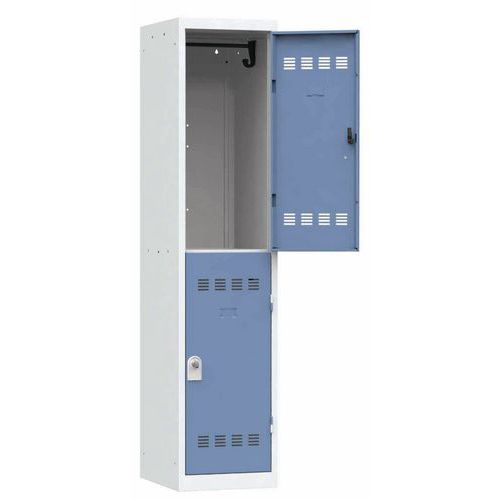 Svařovaná šatní skříň Vinco, 1 sloupec, 2 boxy, 400 mm, otočný uzávěr, šedá/modrá Svařovaná šatní skříň Vinco, 1 sloupec, 2 boxy, 400 mm, otočný uzávěr, šedá/modrá