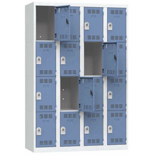 Svařované šatní skříně Vinco, 4 sloupce, 16 boxů, 300 mm, otočný uzávěr