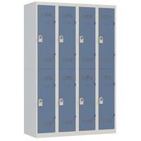 | Název produktu | Svařovaná šatní skříň Vinco, 4 sloupce, 8 boxů, 300 mm, otočný uzávěr, šedá/modrá |