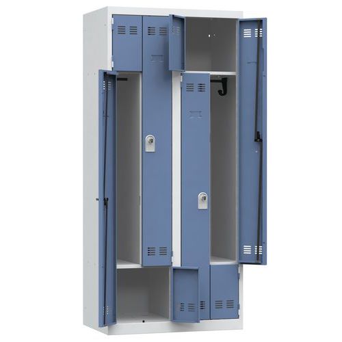 Svařované šatní skříně Vinco, dveře Z, 4 oddíly, otočný uzávěr