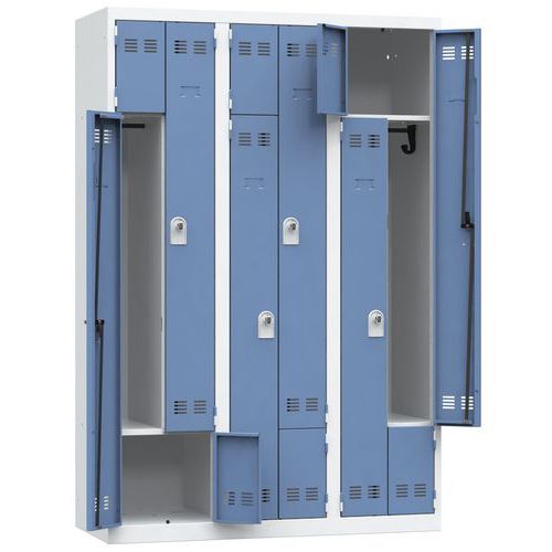 Svařovaná šatní skříň Vinco, dveře Z, 6 oddílů, otočný uzávěr, šedá/modrá Svařovaná šatní skříň Vinco, dveře Z, 6 oddílů, otočný uzávěr, šedá/modrá