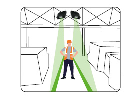 Světelný paprsek (LED nebo laser) upozorňuje pracovníky na přítomnost vozidla a označuje manévrovací oblasti. Zajišťuje vysoký pracovní komfort zejména pro obsluhu vysokozdvižných vozíků, traktorů, jeřábů a dalších průmyslových vozidel.