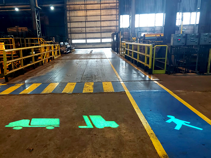 Průmyslové LED projektory jsou ideální v místech s vysokým provozem, kde se tradiční značení rychle opotřebovává. Mohou pracovat nepřetržitě nebo podle naprogramovaného rozvrhu. Značení je možné zobrazovat jak na podlaze, tak na stěnách budov.