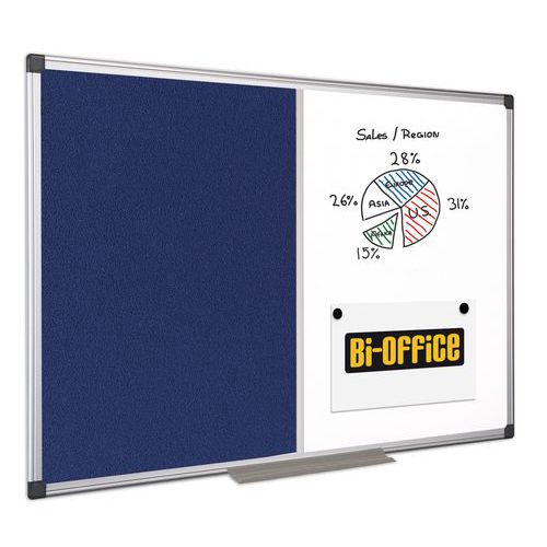 - Jedna část desky tabule z textilního povrchu se sníženou hořlavostí pro použití s připínáčky, špendlíky nebo suchým zipem.