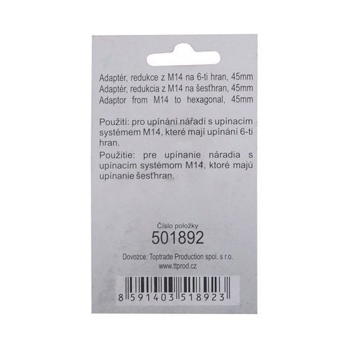 TOPTRADE adaptér, redukce z M14 na 6-ti hran, 45 mm