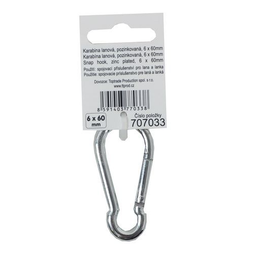 | Název produktu | TOPTRADE karabina lanová, pozinkovaná, obyčejná, 6 x 60 mm |