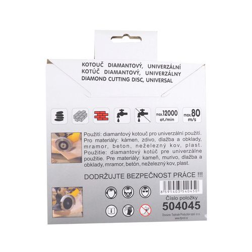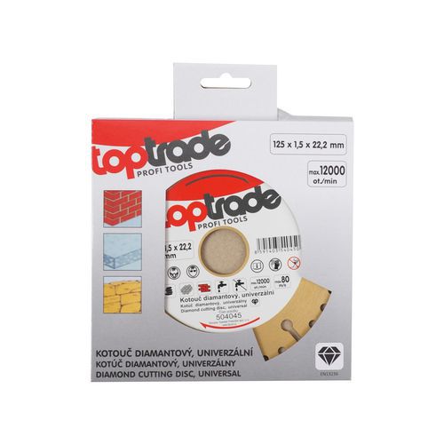| Název produktu | TOPTRADE kotouč diamantový, univerzální, 125 x 1,5 x 22,2 mm |