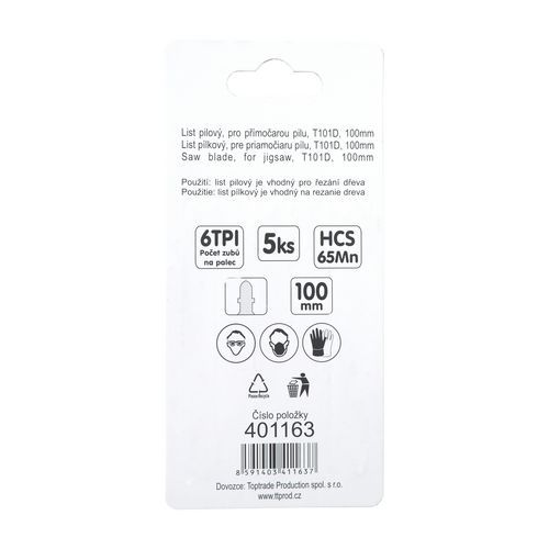 | Název produktu | TOPTRADE list pilový, pro přímočarou pilu, T101D, 100 mm, dřevo, balení 5 ks |