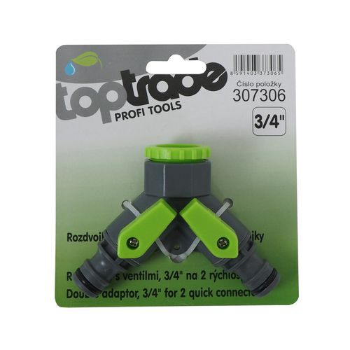 TOPTRADE rozdvojka s ventily, 3/4“ na 2 rychlospojky