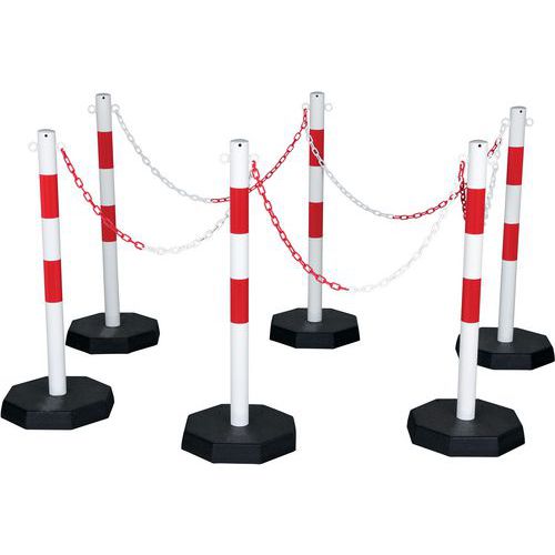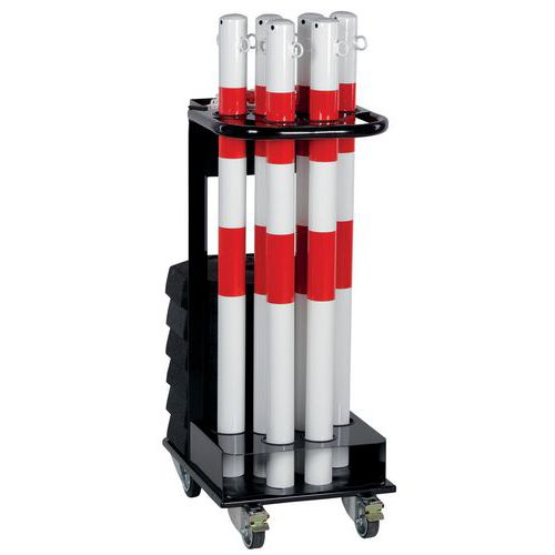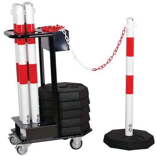 Transportní vozík se sloupky, řetězem a podstavci Crash Stop, červená/bílá
