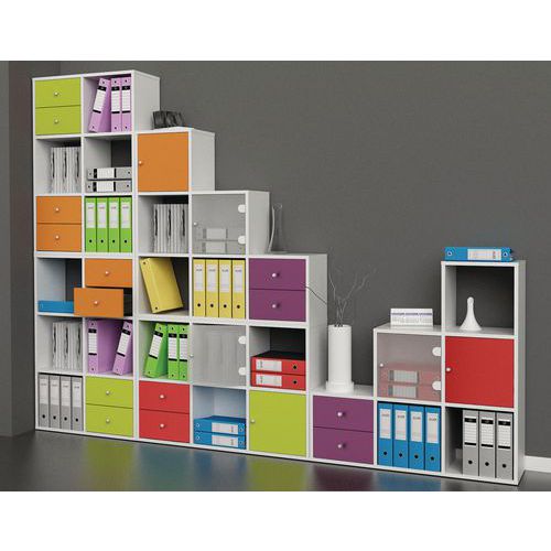 - Moduly můžete doplnit zásuvkami nebo dvířkami.