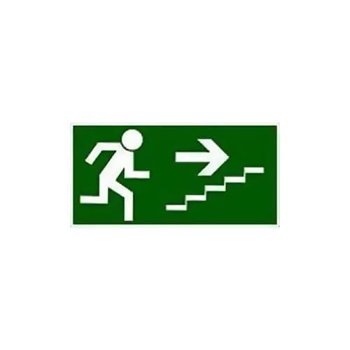 Tabulky s označením únikového schodiště vpravo nahoru. Upevnění na stěnu mechanicky nebo samolepicí fólií. Značky jsou odolné proti UV záření a povětrnostním vlivům.