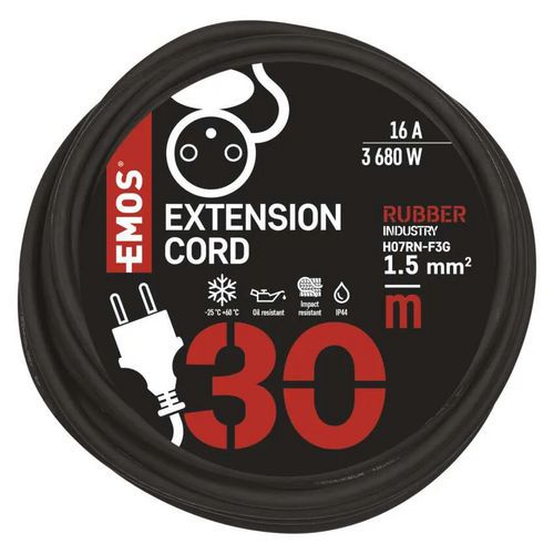 Venkovní prodlužovací kabel, 30 m, 1 zásuvka, guma - neopren, 1,5 mm2