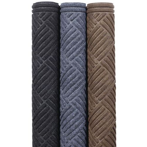 Robustní vstupní rohož s patentovanou konstrukcí Aqua Dam se 4 textilními zesílenými okraji koberce, které fungují jako záchytná vana zadržující až 4 litry vody na metr čtvereční. Vstřikovaný textilní povrch na patentované konstrukci s kosočtvercovým hrotem s nesměrovými drážkami má dvojí účinek pro seškrabávání a stírání nečistot. Podrážka z hrubé pryže zajišťuje maximální odolnost. Cepy pod podrážkou minimalizují pohyb rohože na všech površích a zvedají rohož, aby umožnily vysychání vlhkých podlah i pod rohoží.