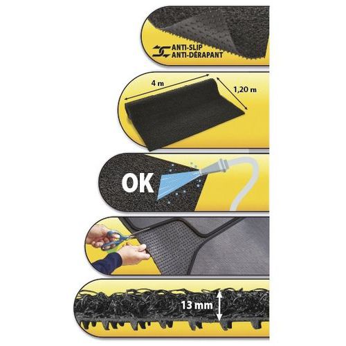 - Rohožka bez hran - snadno se stříhá na požadované rozměry nebo tvar.