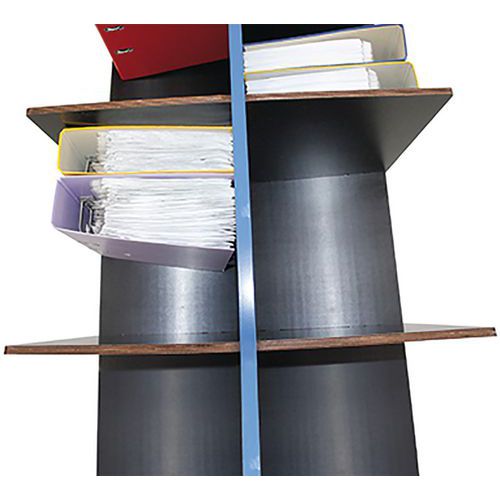 - Naklonění police 9° zamezuje vypadávání šanonů a dokumentů.