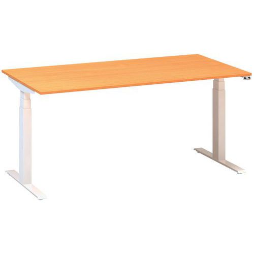 Výškově nastavitelný kancelářský stůl Alfa Up s bílým podnožím, 160 x 80 x 61,5-127,5 cm, dezén buk Bavaria