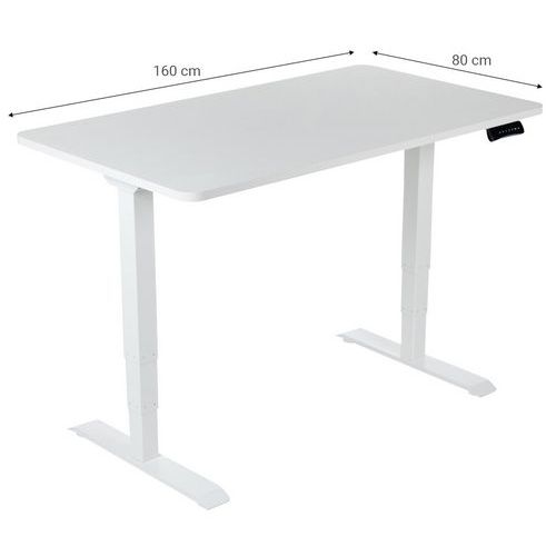 Výškově nastavitelný psací stůl Manutan Expert, bílá základna, šířka 160 cm, bílá