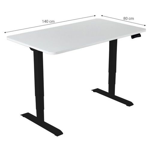 Výškově nastavitelný psací stůl Manutan Expert, černá základna, šířka 140 cm, bílá