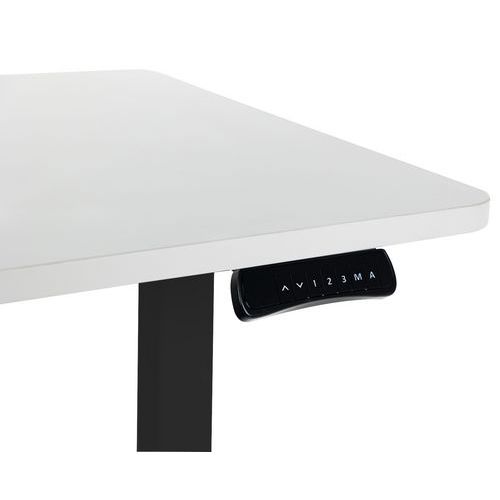 - Ergonomické výškově nastavitelné stoly Manutan Expert s černým podnožím.