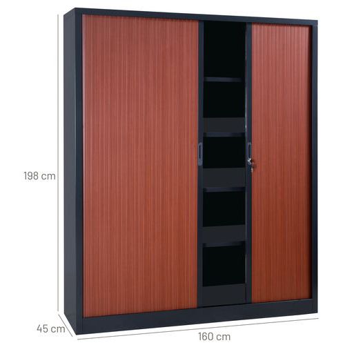 Vysoké kovové spisové skříně Manutan Expert s roletou, 198 x 160 x 45 cm, antracit/třešeň
