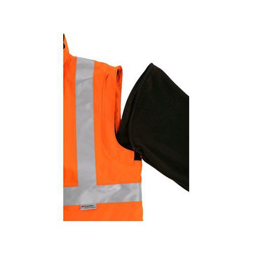 Pánská výstražná bunda 5 v 1 s odnímatelnou vnitřní bundou, odolná proti vodě a větru, 3M reflexní pruhy, lepené švy. Vnější bunda: 2 spodní kapsy s patkou, 2 náprsní kapsy, zip krytý légou zapínanou na druky, kapuce v límci, regulovatelné manžety na Velikost: S-3XL Sezóna: Zimní Svrchní materiál: 100 % polyester Oxford Podšívka: 100 % polyester