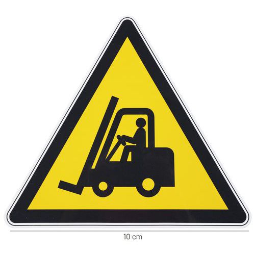 - Výstražné tabulky označující nebezpečí, které může způsobit pohyb průmyslových vozidel, jako jsou vysokozdvižné vozíky nebo manipulační technika.