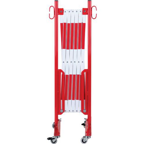 Výsuvná kovová zábrana na kolečkách Dancop, montáž na stěnu, červená/bílá, délka 360 cm