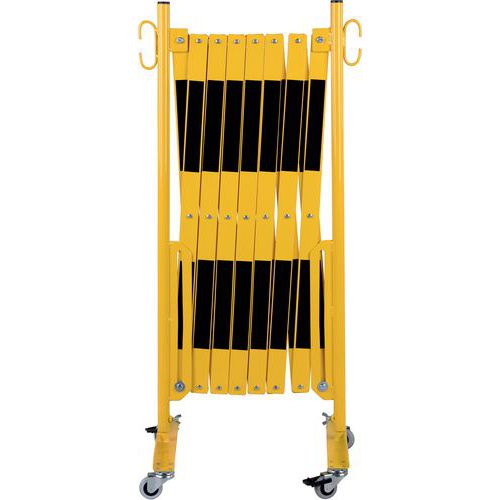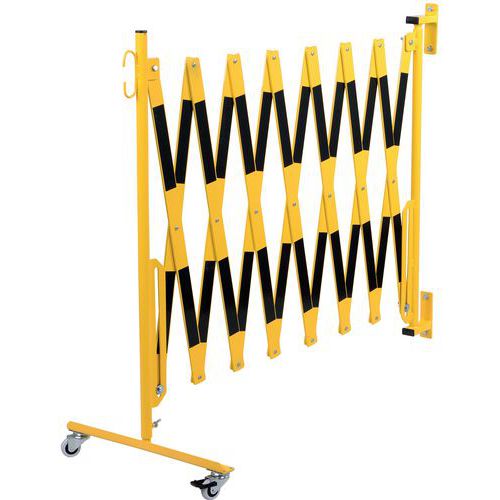 Výsuvná kovová zábrana na kolečkách Dancop, montáž na stěnu, černá/žlutá, délka 400 cm