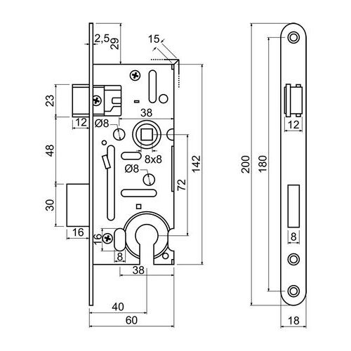 Zadlabací zámek pro cylindrickou vložku, PZ, 18mm