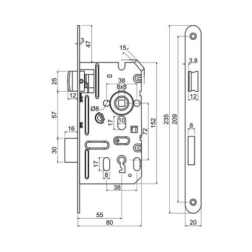 Zadlabací zámky pro dozický klíč, BB, 20mm