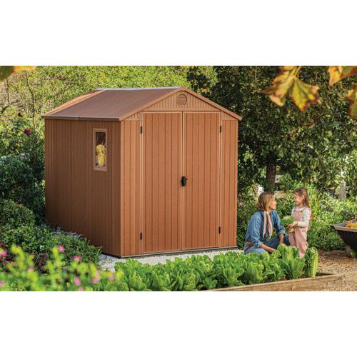 Robustní konstrukce s ocelovými výztuhami a dvojitými stěnami vyrobená z materiálu Evotech (dřevo-plast), který je velmi odolný vůči povětrnostním vlivům.