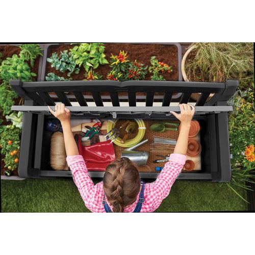 - Plastový povrch z imitace dřeva, díky kterému lavice skvěle zapadne do každé zahrady.