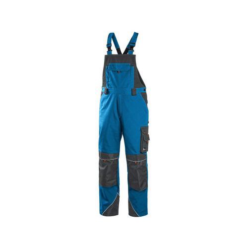 Pánské montérkové kalhoty s náprsenkou, náprsní kapsa s klopou, pas s poutky na opasek, v zadní části guma s knoflíkem pro přizpůsobení velikosti, přední klínové kapsy, multifunkční kapsy na obou stranách, kolena zesílena materiálem 600D polyester s možností vložení kolenních výztuh, dvě zadní kapsy s klopami, spodní část nohavic vyztužena materiálem 600D polyester, šle s gumou vzadu, reflexní doplňky. Doporučené použití: stavebnictví, strojírenství, lehký průmysl, automobilový průmysl, logistika, skladová manipulace, spedice, autoservisy, údržba, montáže, zemědělství, zahrada, hobby. Velikost: 46-64 Svrchní materiál: 65 % polyester 35 % bavlna Reflexní doplňky: Ano OEKO-TEX® STANDARD 100: Ano