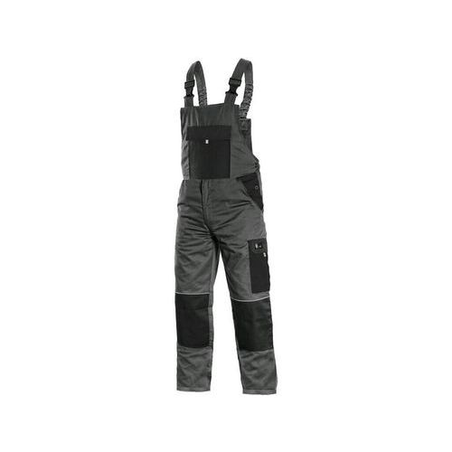 Pánské kalhoty s náprsenkou, přední klínové kapsy, kapsa na metr, boční kapsa s klopou, zadní jednoduchá kapsa, pas s poutky na opasek, kapsa na náprsence. Velikost: 46-64 Normy: EN ISO 13688 Montérková kolekce: CXS PHOENIX Materiálové složení: 65% polyester, 35% bavlna, 190 gsm Barva: šedo-černá