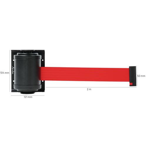 Nástěnné kazety se samonavíjecím pásem jsou ideální pro vymezování přístupu, dočasné navigaci osob, zabránění vstupu apod. Pás lze otočit až o 180°, brzda umožňuje jeho pomalé a bezpečné vtažení do kazety. K připevnění na zeď. Pás lze zajistit zasunutím do protikusu nebo obtočením pásu okolo protilehlého zábradlí a zajištěním o pás speciální spojkou, obojí je součástí balení.