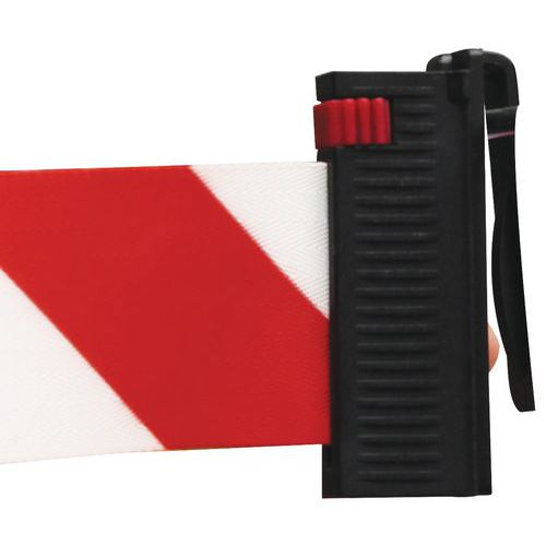 Nástěnné kazety se samonavíjecím pásem jsou ideální pro vymezování přístupu, dočasné navigaci osob, zabránění vstupu apod. Pás lze otočit až o 180°, brzda umožňuje jeho pomalé a bezpečné vtažení do kazety. K připevnění na zeď. Pás lze zajistit zasunutím do protikusu nebo obtočením pásu okolo protilehlého zábradlí a zajištěním o pás speciální spojkou, obojí je součástí balení.