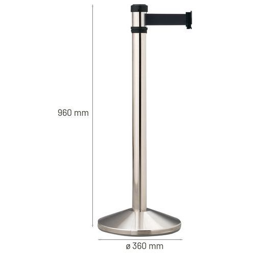 Zahrazovací sloupky se samonavíjecím pásem vhodné pro vymezení přístupu, dočasné navigaci osob apod. Základna opatřena gumovou podložkou pro větší stabilitu. Hlava sloupku umožňuje ukončit až 3 další pásy. Pro ukončení pásu na zdi je nutno dokoupit nástěnný úchyt 150199.