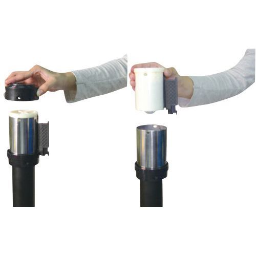 Zahrazovací sloupky se samonavíjecím pásem vhodné pro vymezení přístupu, dočasné navigaci osob apod. Základna opatřena gumovou podložkou pro větší stabilitu. Pro ukončení pásu na zdi je nutno dokoupit nástěnný úchyt 150199.
