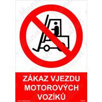 Bezpečnostní značky, tabulky nebo samolepky zákaz vjezdu motorových vozíků splňují požadavky právních a technických předpisů, zejména Nařízení vlády č. 375/2017 Sb., ČSN ISO 3864-1, ČSN ISO 3864-2, ČSN ISO 3864-3, ČSN ISO 3864-4. Používá se k označení míst a objektů, kam je z bezpečnostních důvodů zakázán vjezd motorových vozíků.
