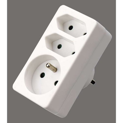 Zásuvka rozbočovací 2x plochá + 1x kulatá, bílá
