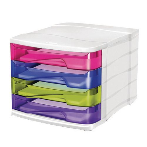 - Polootevřené zásuvky pro snadné uložení dokumentů bez nutnosti vysunutí šuplíků.