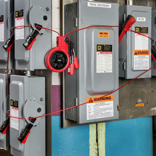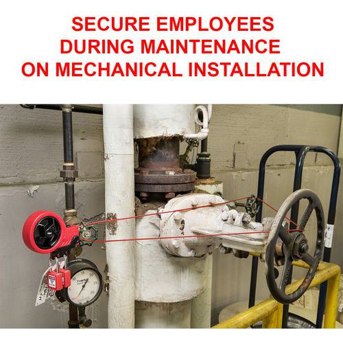 - Zajišťovací zařízení Master Lock s navíjecím lankem, ideální pro ventily a další zamykací systémy.
