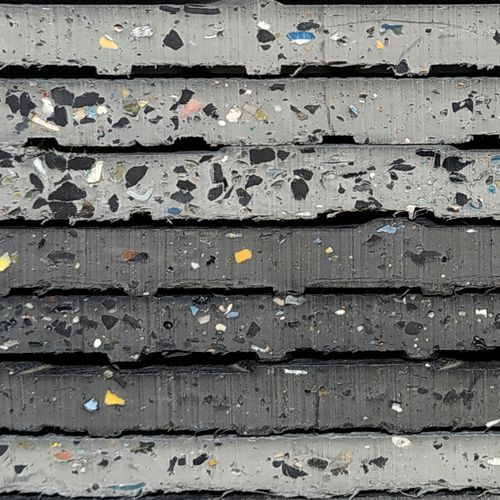 Dlažba je tvořena vysoceodolným homogenním materiálem 100% PVC a navíc směsí PVC z elektrokabelů s aditivy.