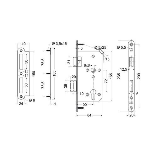 | Název produktu | Zátěžový zadlabací zámek pro cylindrickou vložku, PZ |