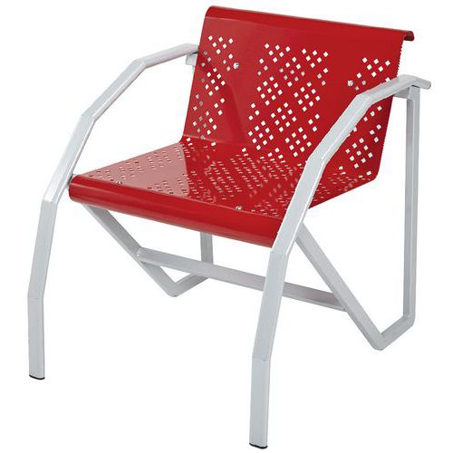 - Kovová sedadla z perforovaného plechu v různých barvách.